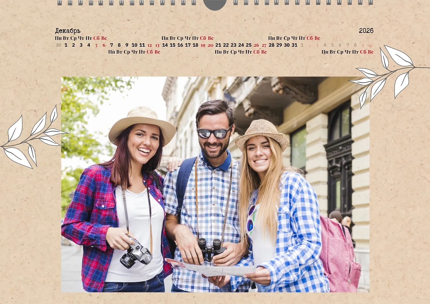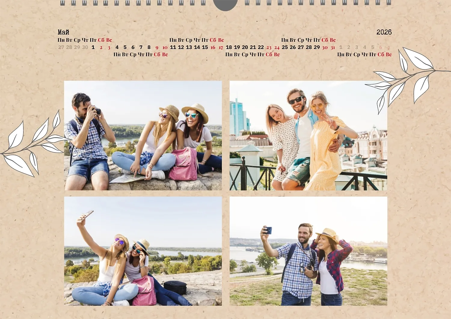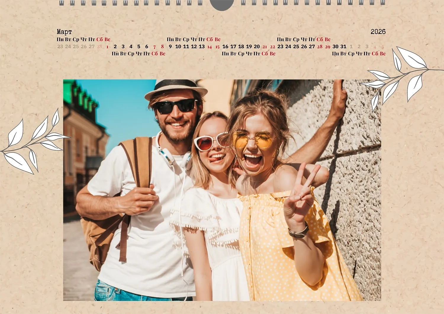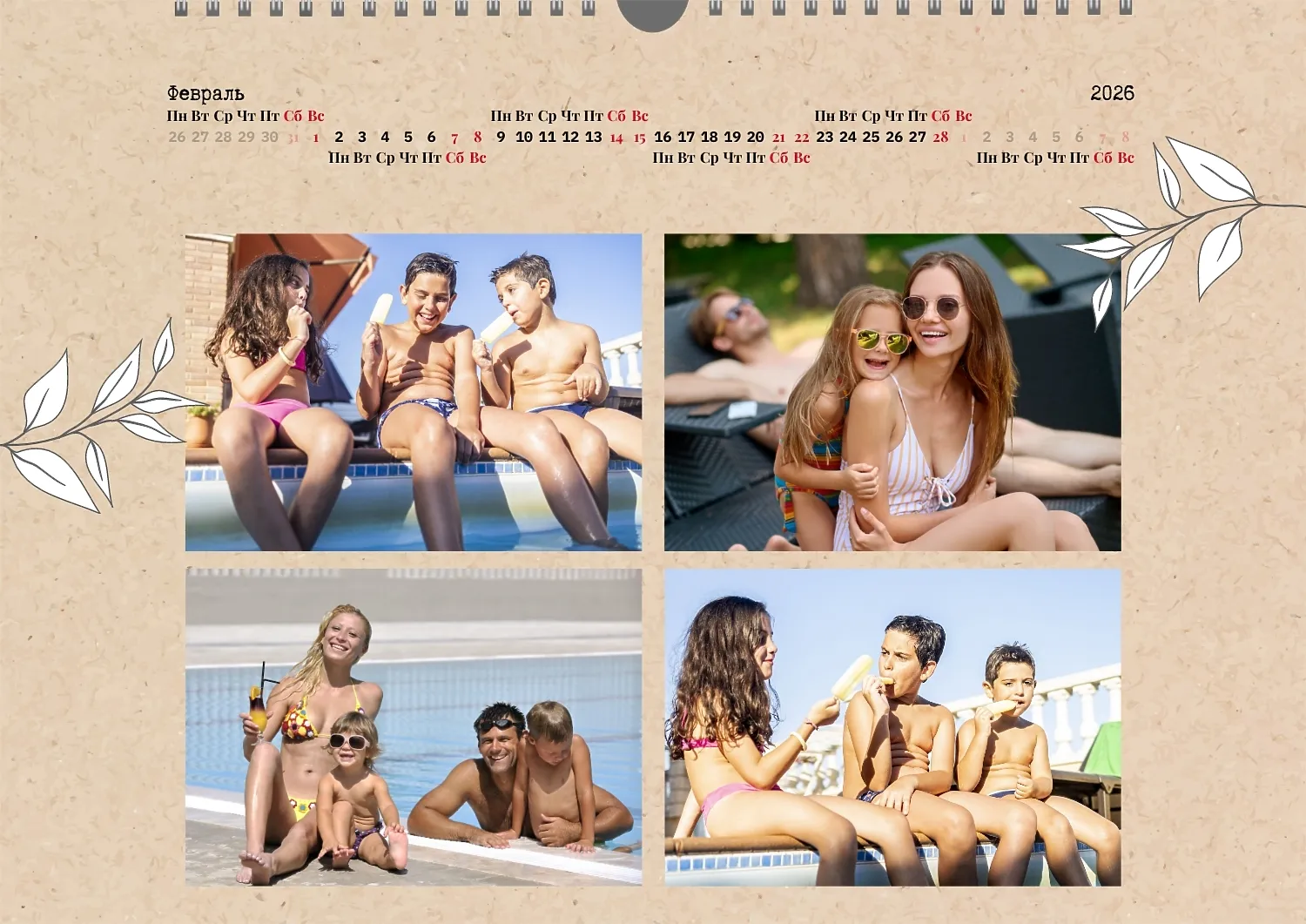Готовый шаблон настенного календаря с личными фотографиями — это прекрасное решение для тех, кто хочет создать уникальный и стильный аксессуар для дома, офиса или подарка. Такой горизонтальный календарь идеально подходит для людей, которые ценят индивидуальность и стремятся окружить себя вещами, наполненными смыслом и теплыми воспоминаниями. Главное преимущество шаблона — его доступность в удобном онлайн-конструкторе. Вы можете легко загрузить свои фотографии, изменить расположение элементов, добавить текстовые комментарии, выделить важные даты или события. Конструктор позволяет адаптировать шаблон под ваш стиль: выбрать цветовую гамму, шрифт, и даже настроить отдельные детали дизайна.