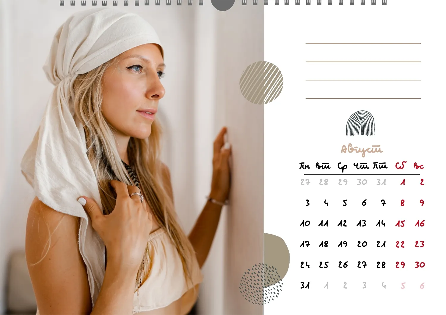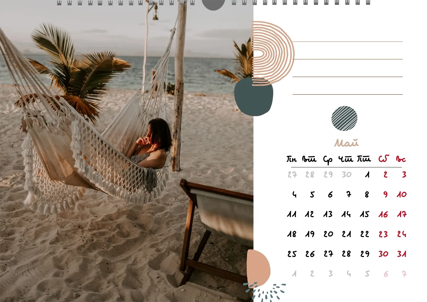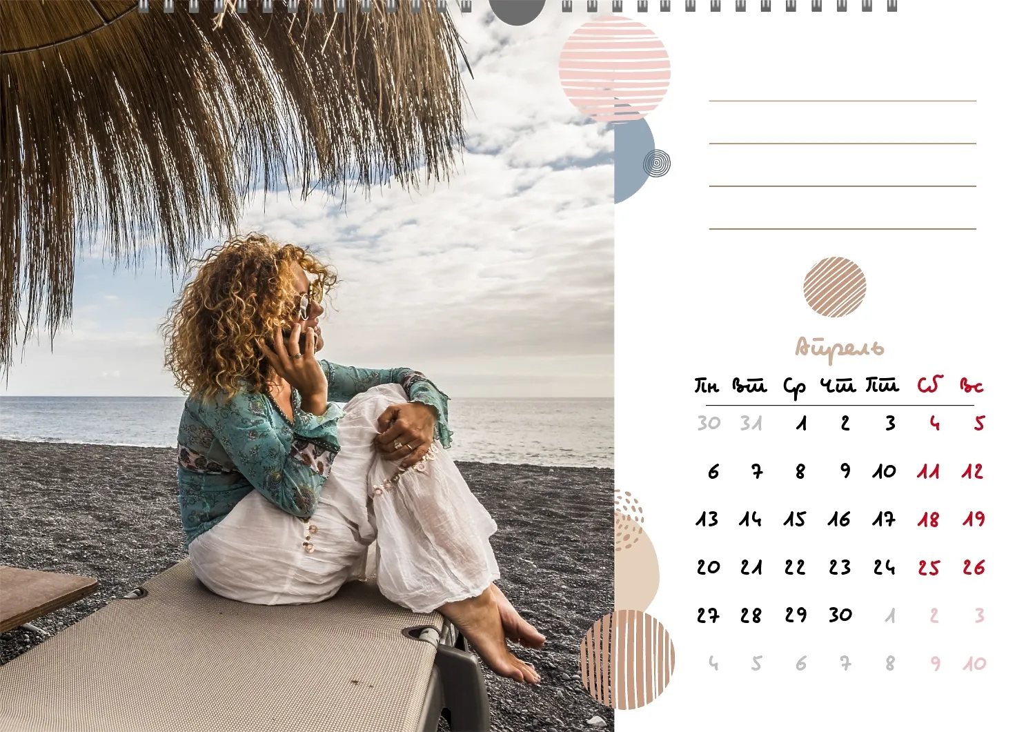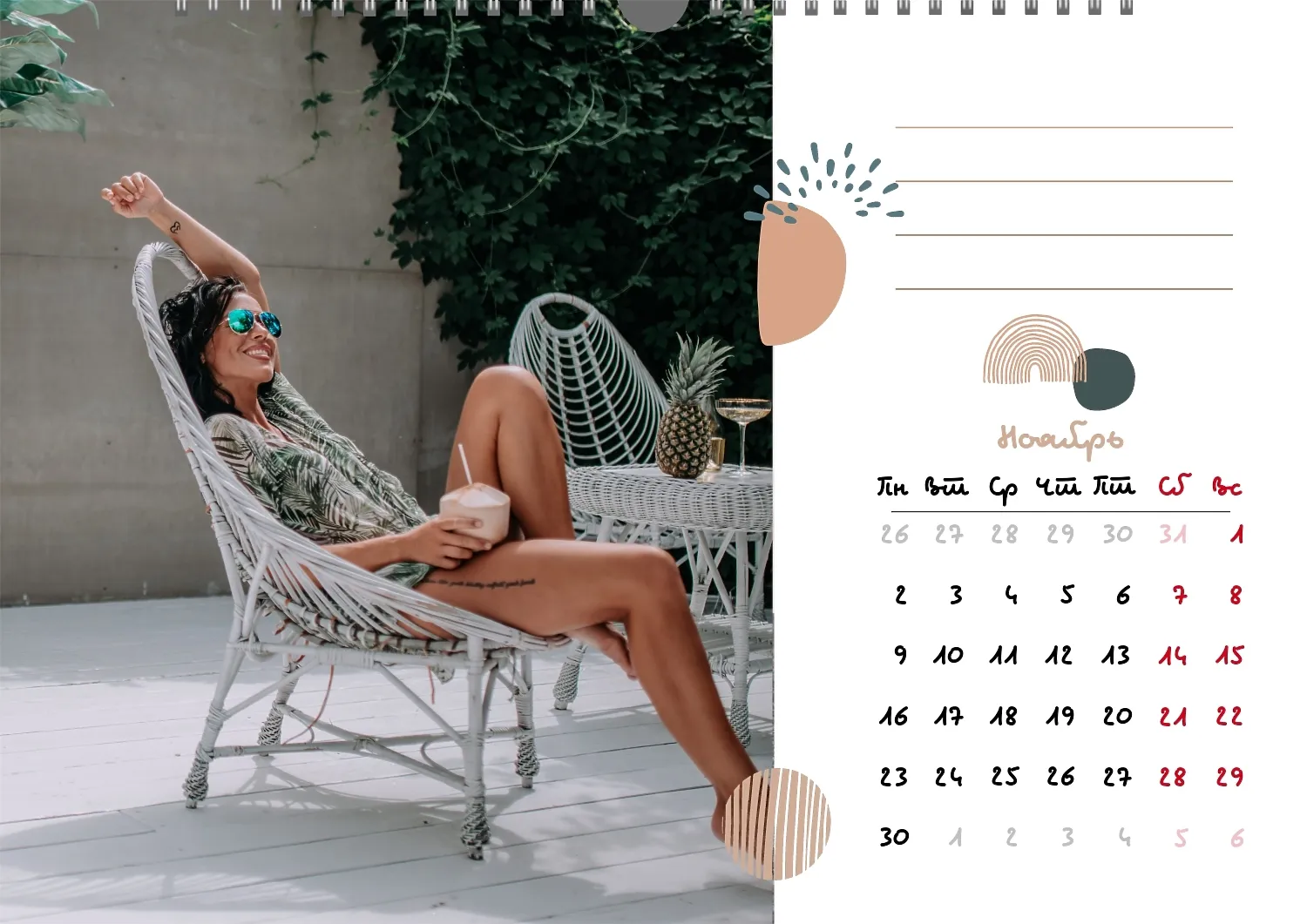 Готовый шаблон настенного горизонтального календаря «Воспоминания» создан для тех, кто ценит теплые моменты и хочет сохранить их в повседневной жизни. Его мягкая композиция, светлая палитра и аккуратные декоративные детали позволяют подчеркнуть атмосферу семейного уюта, путешествий, событий и дорогих сердцу встреч. Такой шаблон подходит родителям, учителям, фотографам, творческим студиям, владельцам небольших брендов, а также всем, кто хочет оформить личные или рабочие пространства с душевным акцентом. Он одинаково уместен и дома, и в офисе, и в студии — везде, где важны эмоции и визуальная эстетика. В онлайн-конструкторе этот календарь можно легко адаптировать под свой стиль. Каждую страницу можно наполнить собственными фотографиями — от семейных снимков до портретов учеников или кадров с мероприятий. Подписи и даты редактируются: вы можете изменить названия месяцев, добавить важные события, выделить дни рождения, памятные даты или культурные мероприятия вашей организации. Шрифты и цвета надписей также настраиваются, позволяя сделать календарь более ярким, более строгим или, наоборот, максимально нежным. При желании можно добавить логотип компании, слоган, контактную информацию или оставить дизайн полностью личным и домашним.
