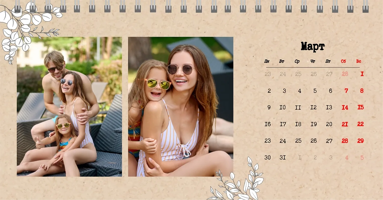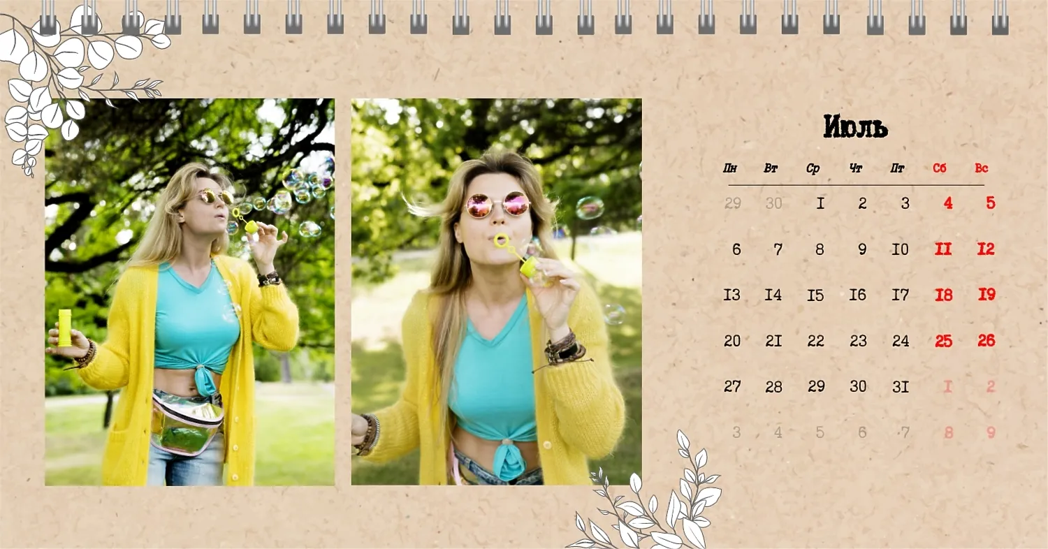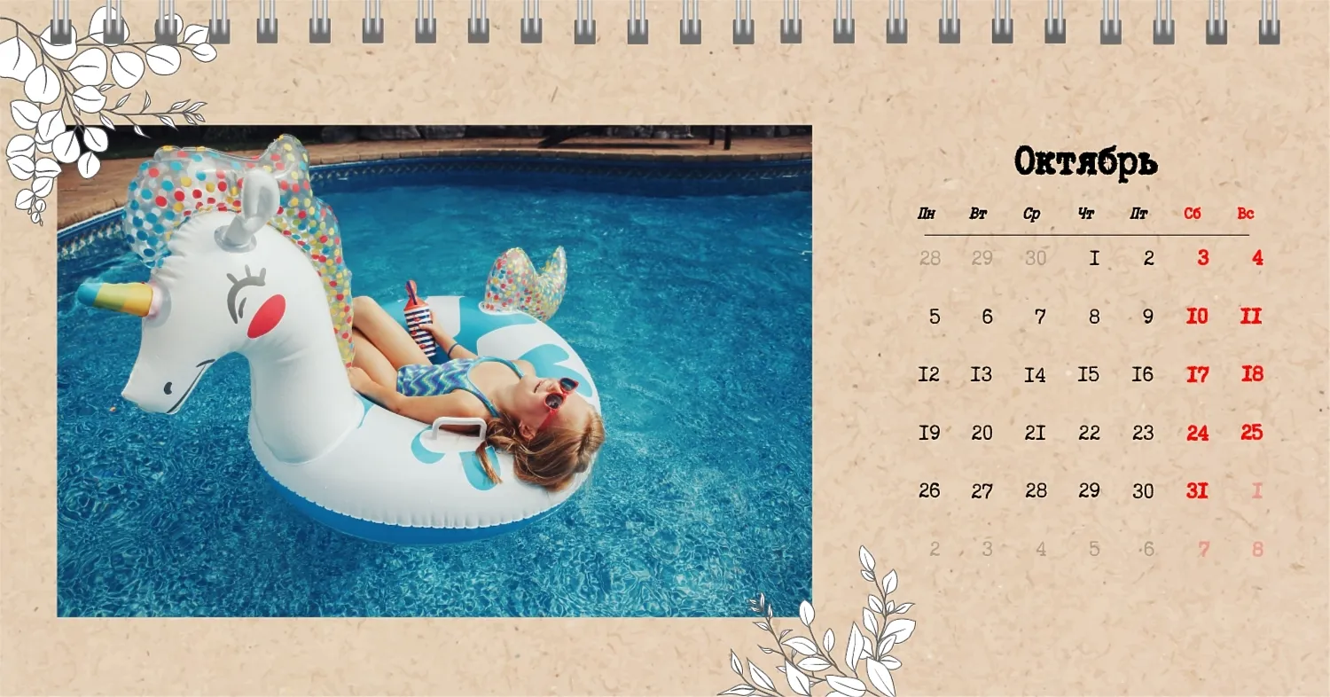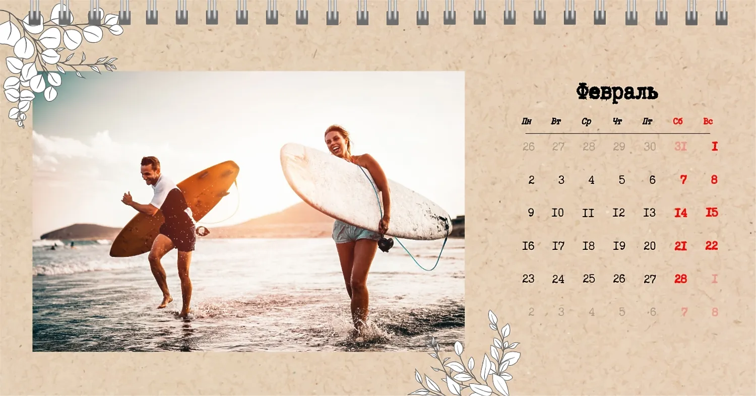 Готовый шаблон настольного перекидного календаря «Привет» создан для тех, кто любит современный и дружелюбный стиль в оформлении. В онлайн-конструкторе шаблон легко адаптируется под ваши задачи и стиль. Можно заменить фон на более спокойный или наоборот яркий, изменить расположение месяцев, выбрать другой стиль шрифтов, добавить иллюстрации, декоративные элементы или фотографии. Каждый месяц можно оформить по-своему: например, использовать фотографии коллектива, любимые семейные снимки или изображения проектов и работ. Также легко внести важные даты – корпоративные мероприятия, личные праздники, дедлайны или дни рождения близких. Редактирование проходит максимально просто и интуитивно, не требуя специальных навыков в дизайне. Все элементы можно перемещать, увеличивать, перекрашивать, а результат сразу отображается на экране. Вы самостоятельно формируете настроение календаря: нежное и домашнее, деловое и сдержанное или яркое и вдохновляющее. Используя шаблон «Привет» в нашем онлайн-конструкторе, вы создаете не просто календарь, а личный украшенный акцент пространства, который будет радовать и вдохновлять на протяжении всего года.